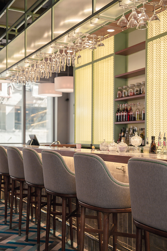 Bitters and Sweets’ unique cocktails concept inspired us to design a space that embodies elegance and comfort. Focusing on the details, we translated the classic herringbone motif into modern takes to create a unified design. By incorporating dashes of bright colours, it brings about a fun, and energetic atmosphere to the space. Our design thrives to give a different experience over the course of the day to customers, so they can leisurely enjoy delicious cocktails, hours on end and share some heart to hearts in this cozy bar amongst the hustle-bustle of Lan Kwai Fong.