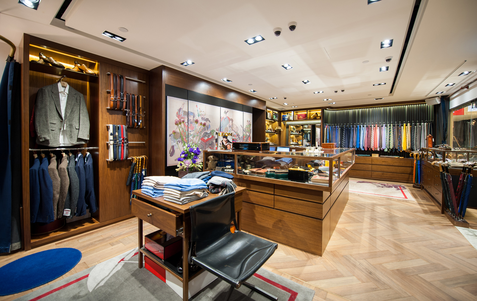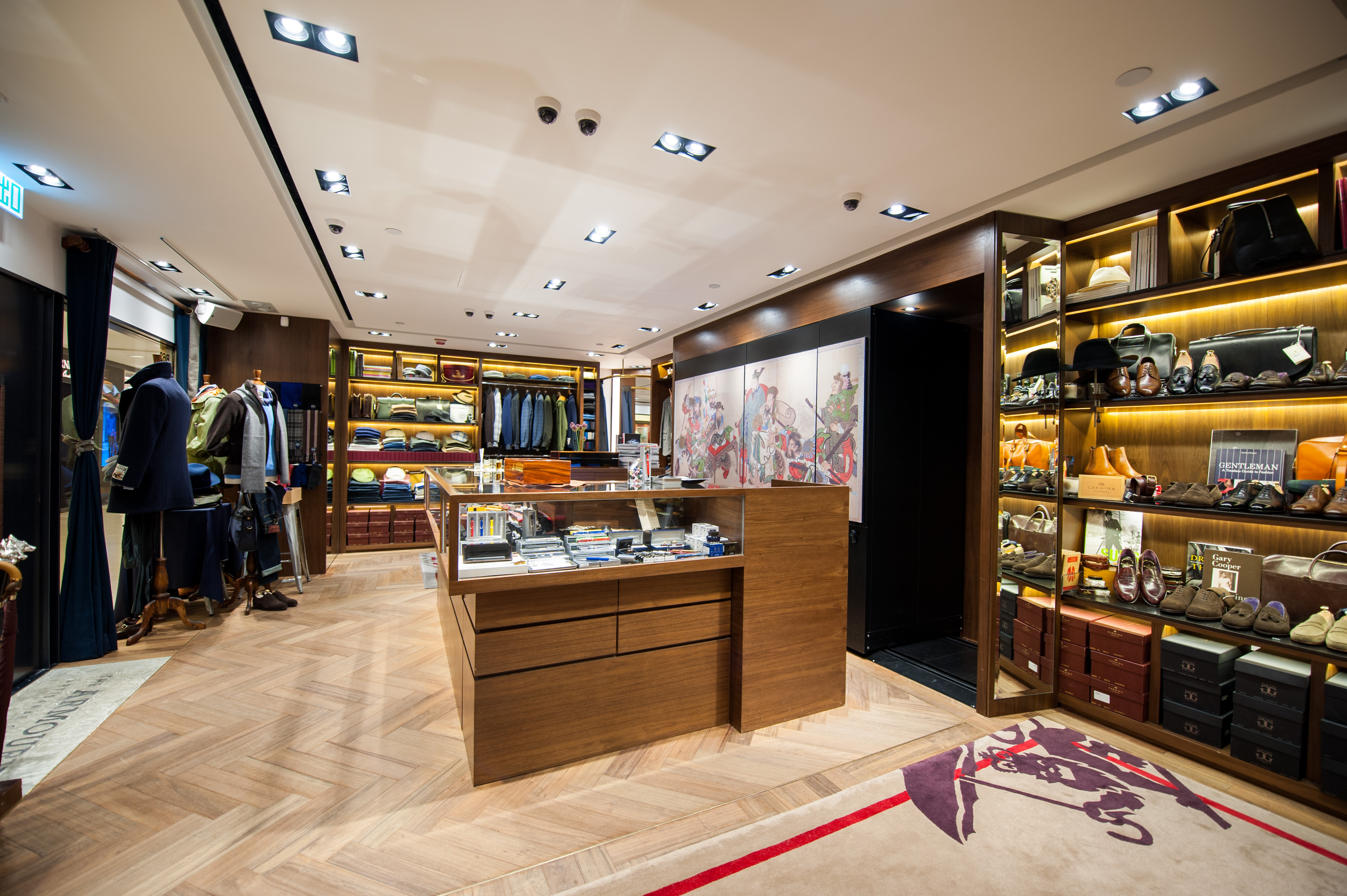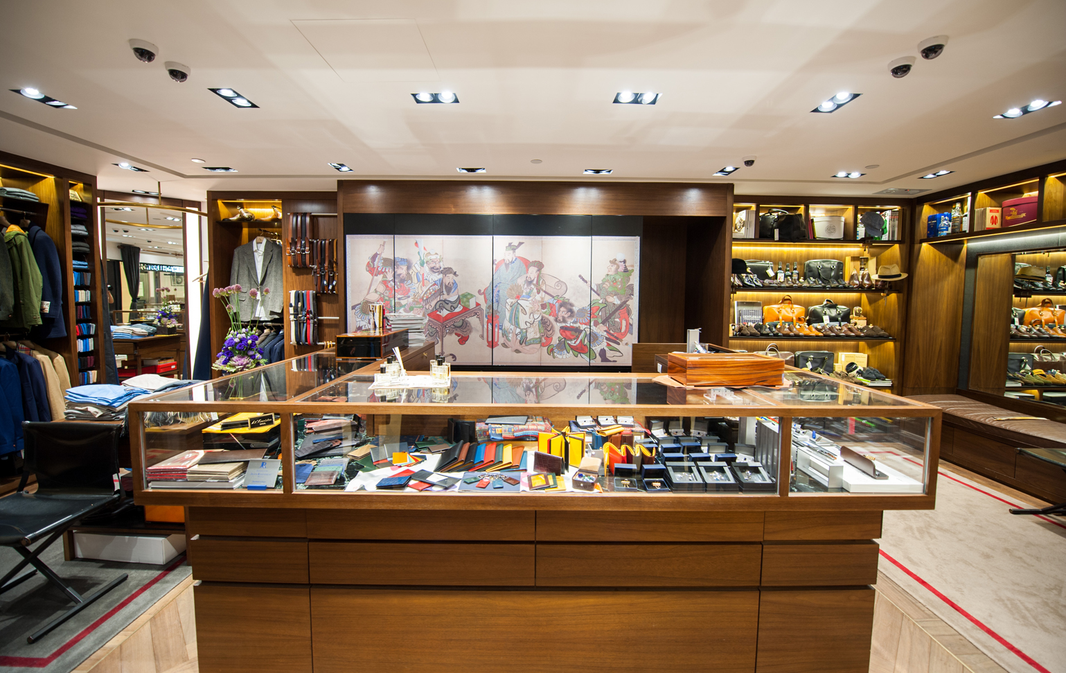 Situated in one of the most luxurious malls in Hong Kong, the challenge of the store was to create a highly efficient space for storage and display in the 450 square meters shop. We designed a compact space featuring a center U-shape sales and cashier table, banquet seating, as well as floor to ceiling shelvings. Behind a Chinese painting printed on walnut wood panels, we utilized an office compact rolling rack to increase storage space. The minimal storefront of blackened steel and solid metal doors draw parallel to the namesake title “The Armoury” and keeps to its brand identity. Curtains hung at the storefront create a sense of a privacy and home-like comfortable atmosphere.