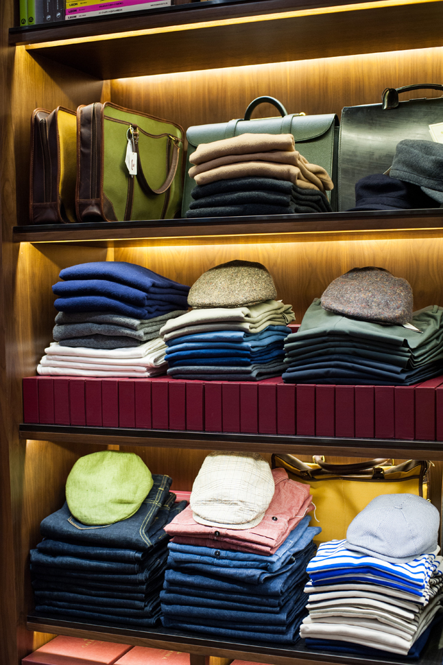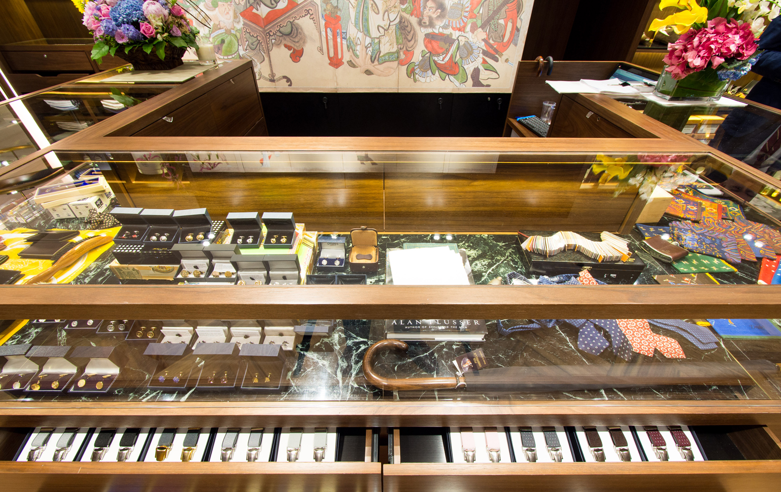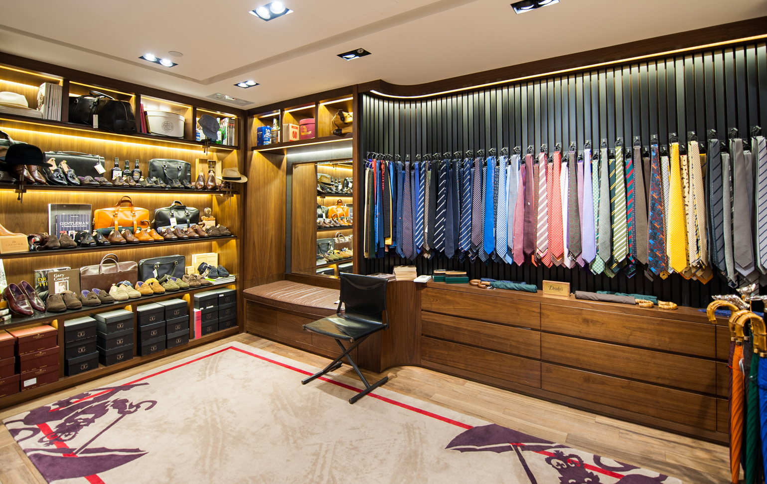 Situated in one of the most luxurious malls in Hong Kong, the challenge of the store was to create a highly efficient space for storage and display in the 450 square meters shop. We designed a compact space featuring a center U-shape sales and cashier table, banquet seating, as well as floor to ceiling shelvings. Behind a Chinese painting printed on walnut wood panels, we utilized an office compact rolling rack to increase storage space. The minimal storefront of blackened steel and solid metal doors draw parallel to the namesake title “The Armoury” and keeps to its brand identity. Curtains hung at the storefront create a sense of a privacy and home-like comfortable atmosphere.