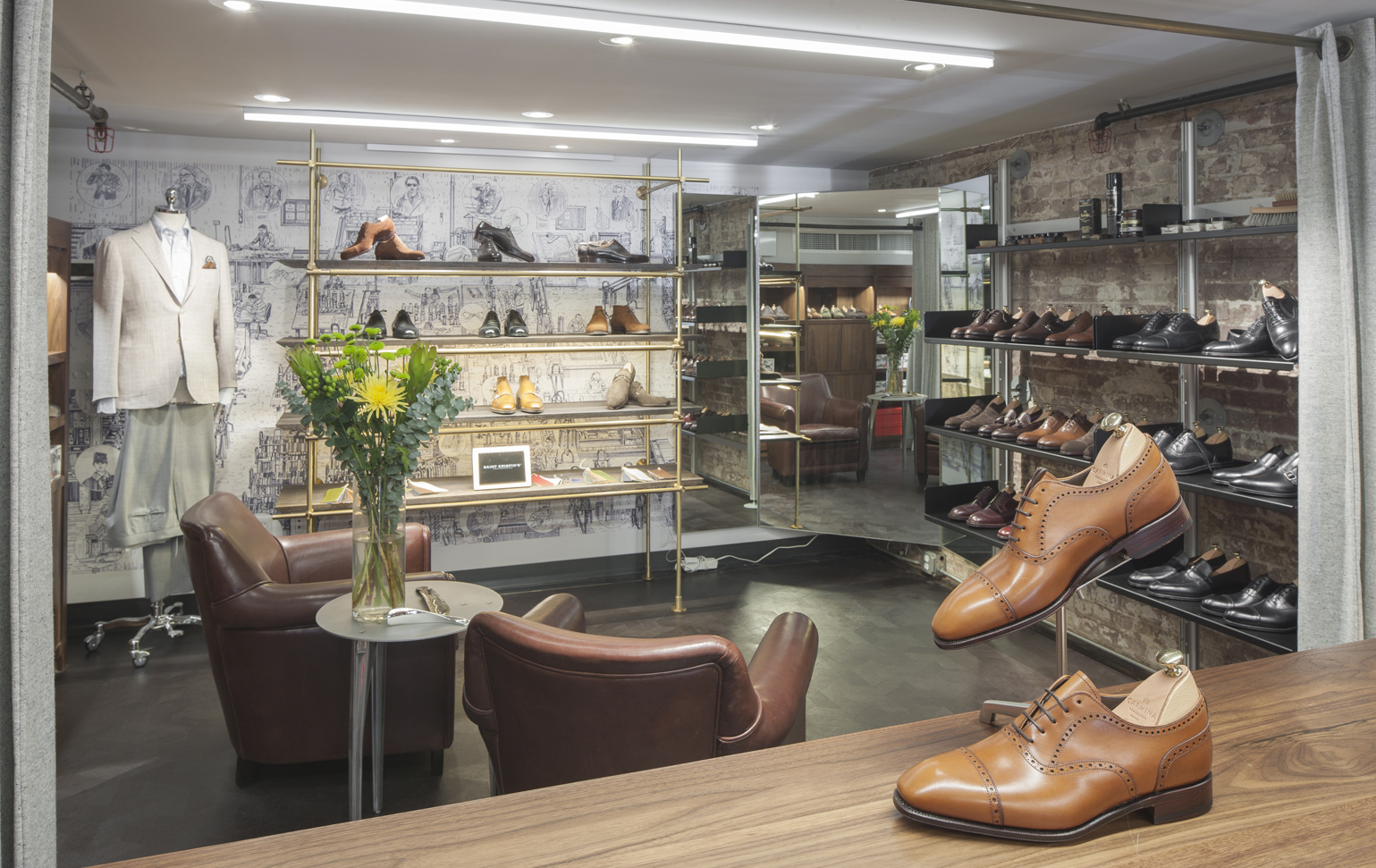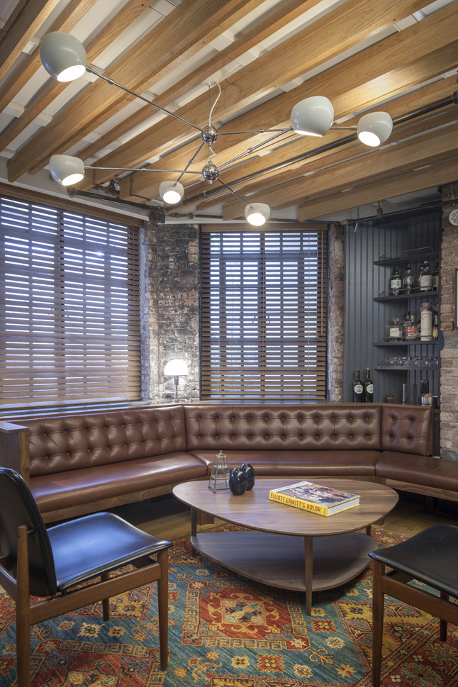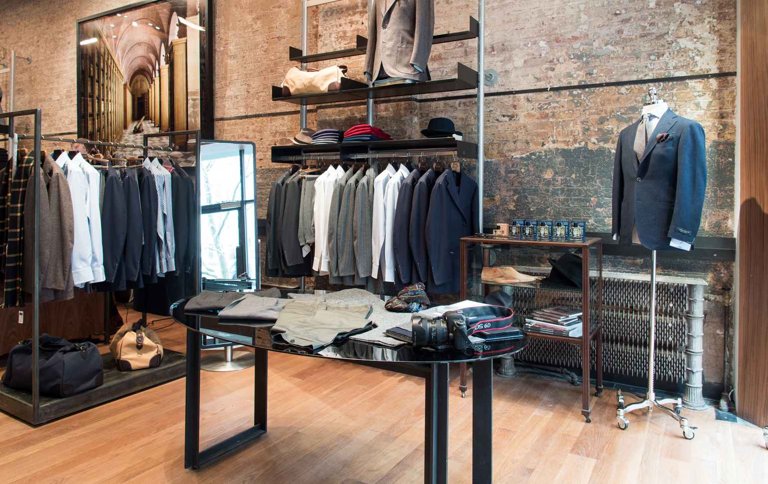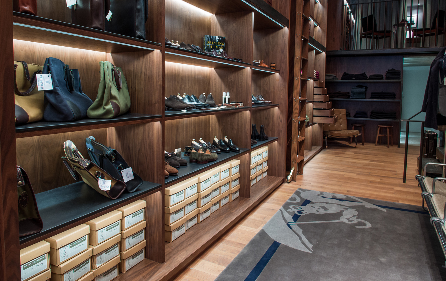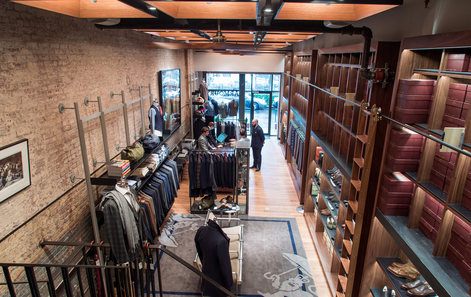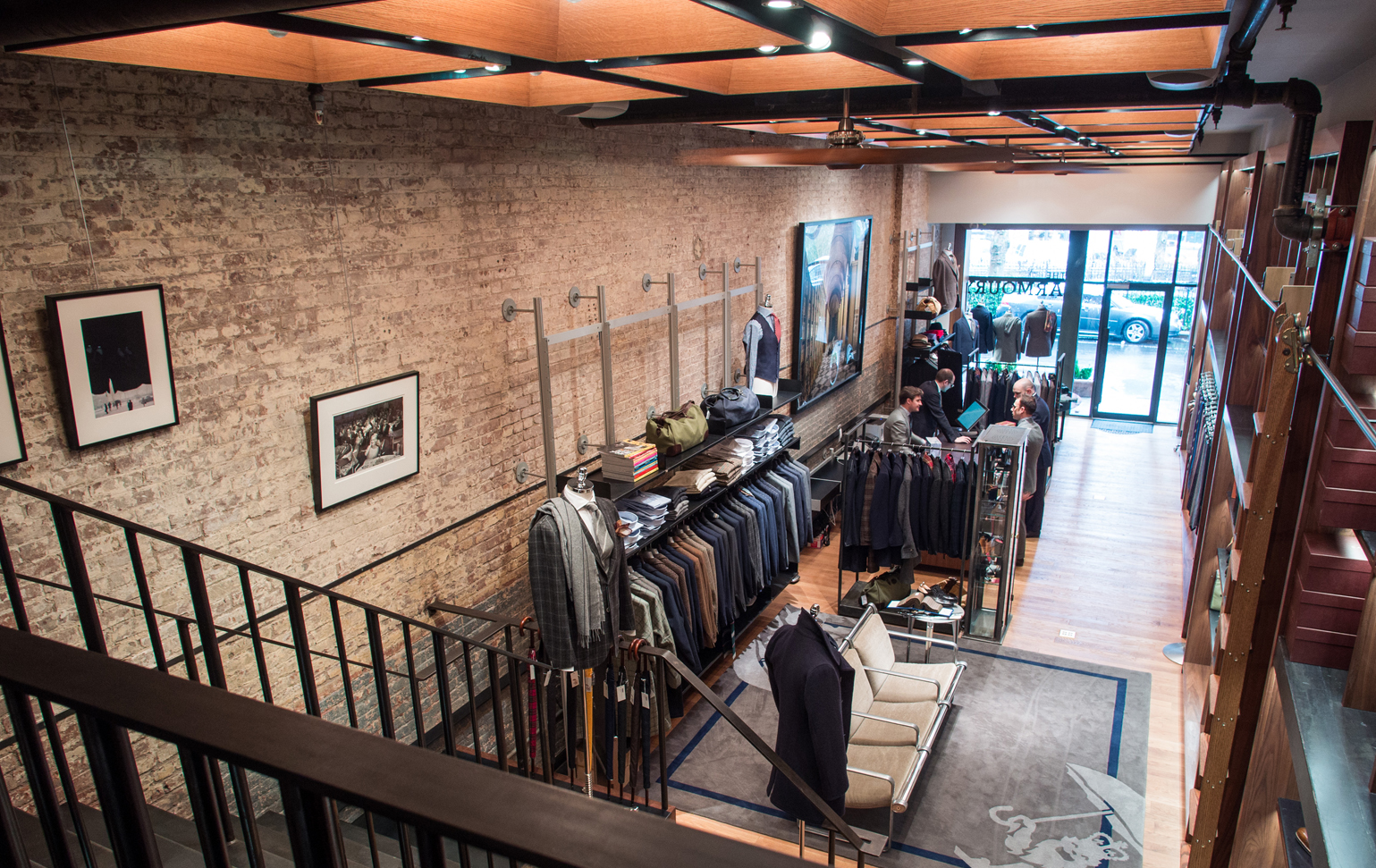 Located in a pre-war building in New York City’s Tribeca area, The Armoury NYC houses three stories of ready to wear and bespoke menswear garments and accessories. Co-designed with my friend and colleague from Rhode Island School of Design, Greg Yang, we created a space that respected the heritage of the building as well as aligning with the brand’s identity. The existing brick wall, wood floors, a NYC manhole and vintage heat radiators were elements that we kept and integrated into the store alongside the signature wall to ceiling walnut cabinets with rolling ladders. Walking across the space under an array of coffer ceilings, a black metal staircase leads to the mezzanine level of the store housing bespoke shoes. Next to a row of changing rooms, stairs leading down to the basement opens into the back of house office, pantry, as well as a private VIP area connected to an open space for cigar breaks. We very much enjoyed designing this space, and if you have the pleasure of visiting the store, we hope you will enjoy the many small details that we put into it.