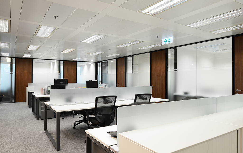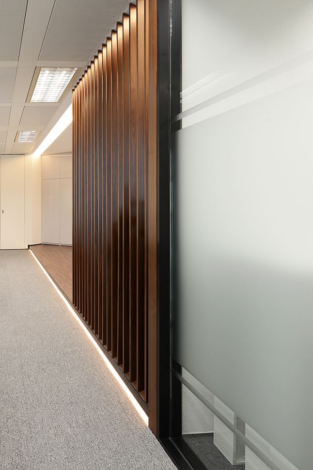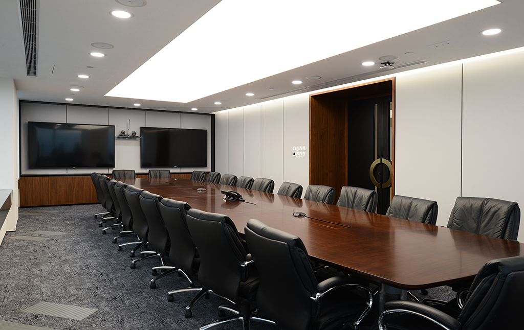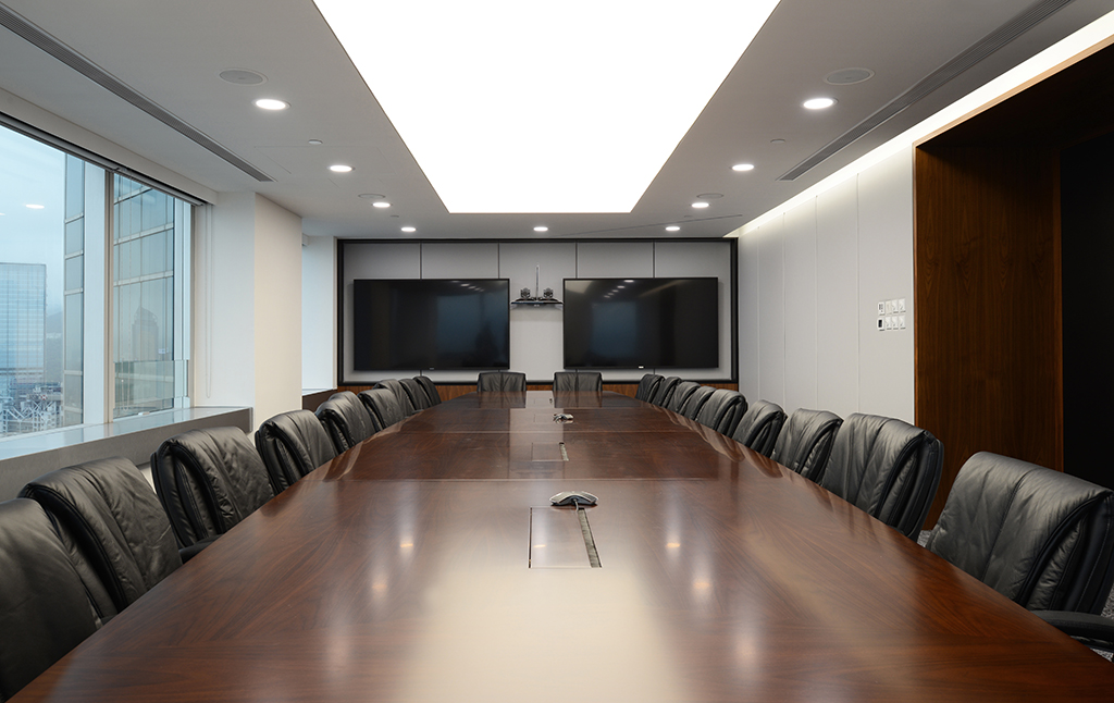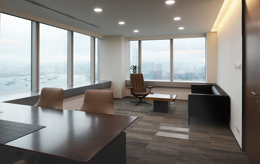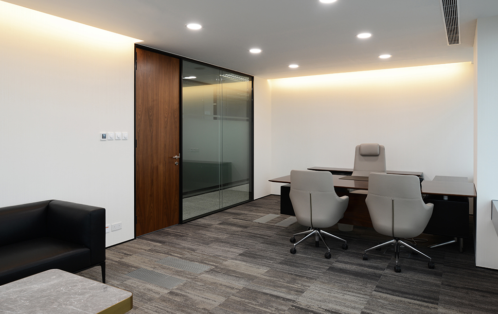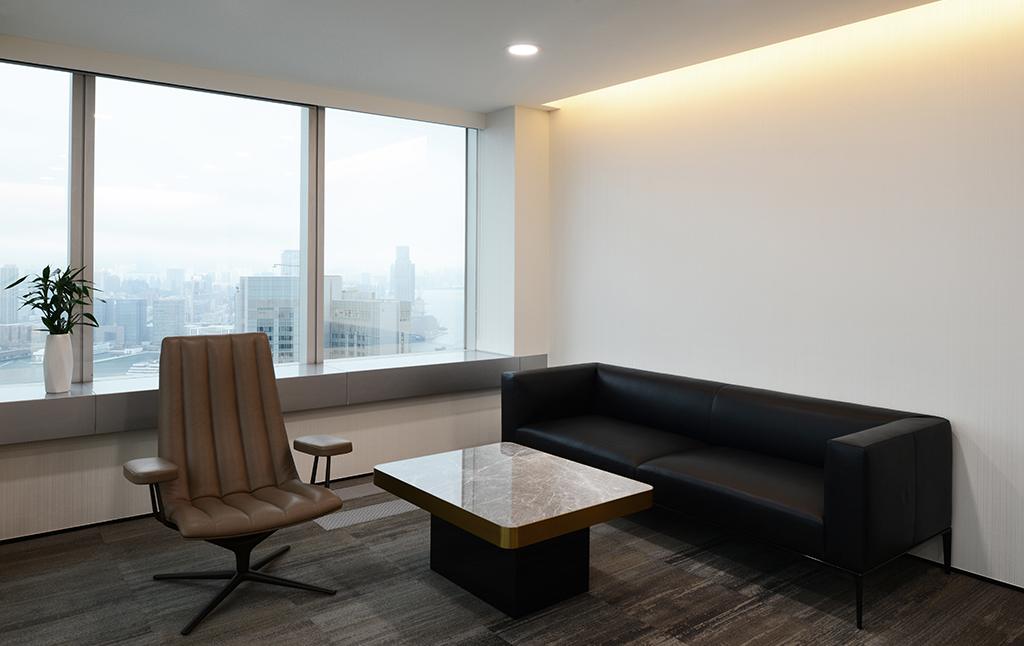 The headquarters of a corporate Chinese company, Kingford Link’s design can be described as an east meets west contemporary and minimal interior space. Our design team drew inspiration from traditional Chinese and contemporary Western designs to create a modern and practical working environment. The circular door handle of the boardroom echos that of a traditional Chinese entrance as well as symbolizes good fortune. Aligning with Feng Shui, our design is based on an open plan office with peripheral private offices. White marble was used in the reception foyer to create a luxurious and bright environment to receive guests. An open pantry with slotted wood partition allows employees to take breaks within a semi private area that encourages a more positive working environment and open communication. The monocromatic colours and warm material palette create a bright and cozy ambience to balance the interior comfort level establishing a more efficient working environment.