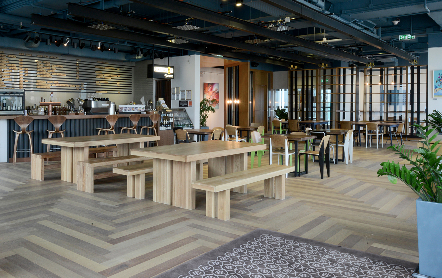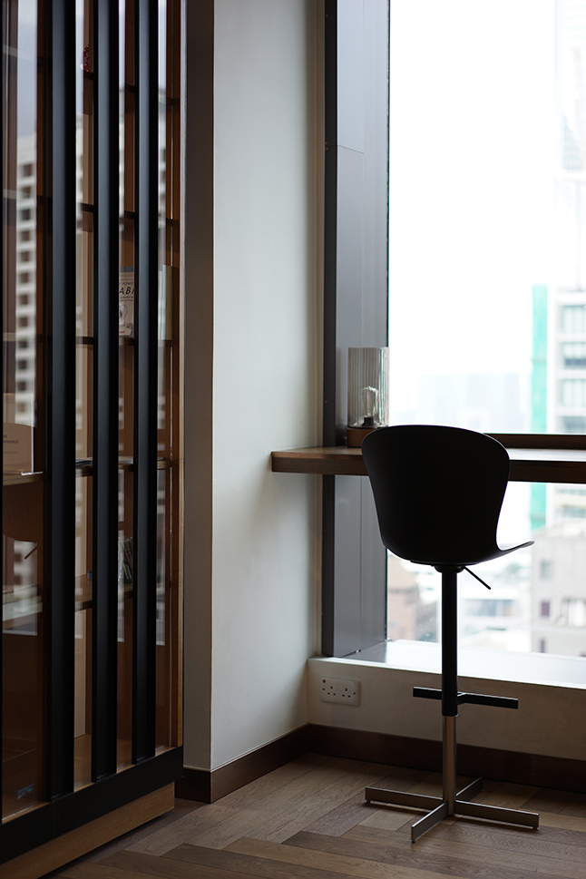 Sustainability was an important factor and the design optimizes daylighting by maximizing usage of the large windows. We also specified readily available materials and products that have a longer and lower life cycle cost wherever possible. Nanoleaf, a new and unique Hong Kong based lighting company that produces highly energy efficient LED lightbulbs was incorporated as a lighting feature in the space.