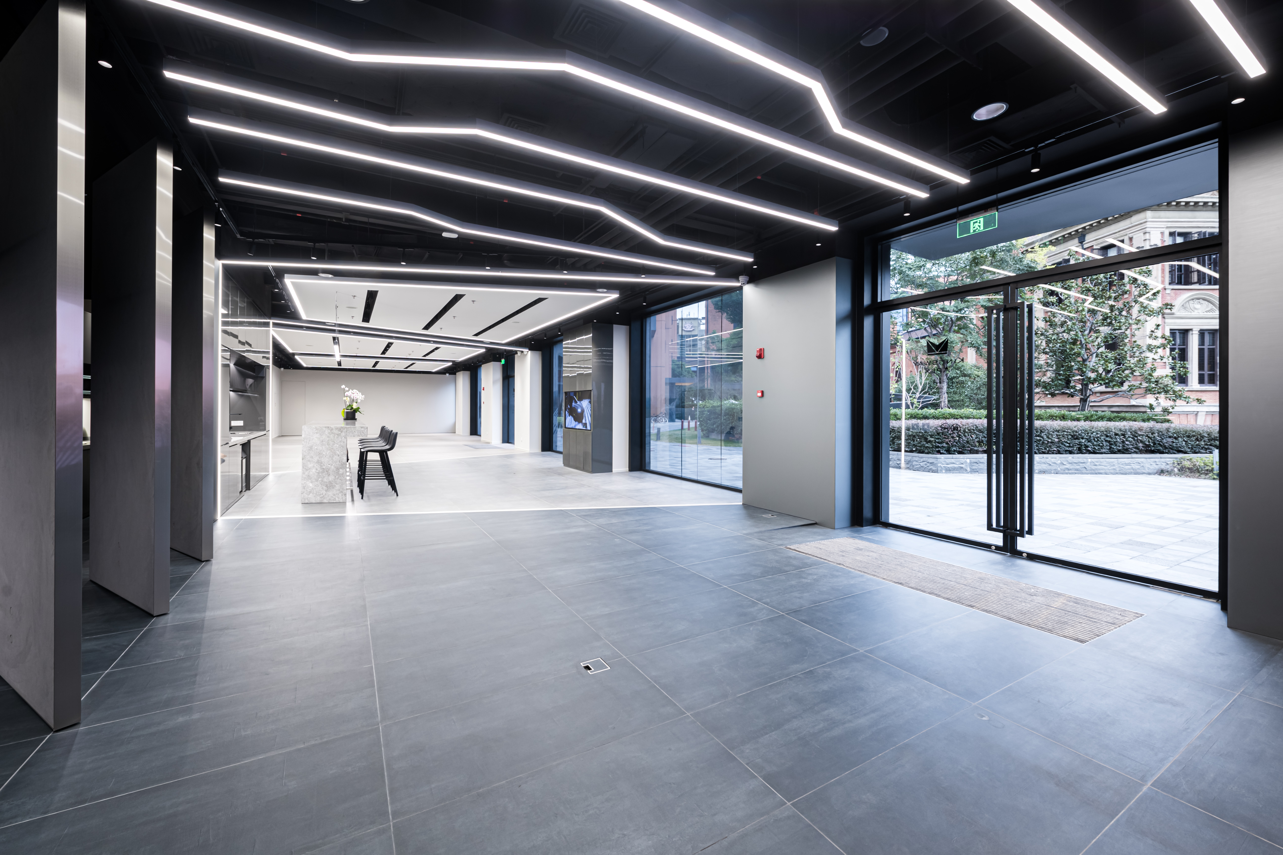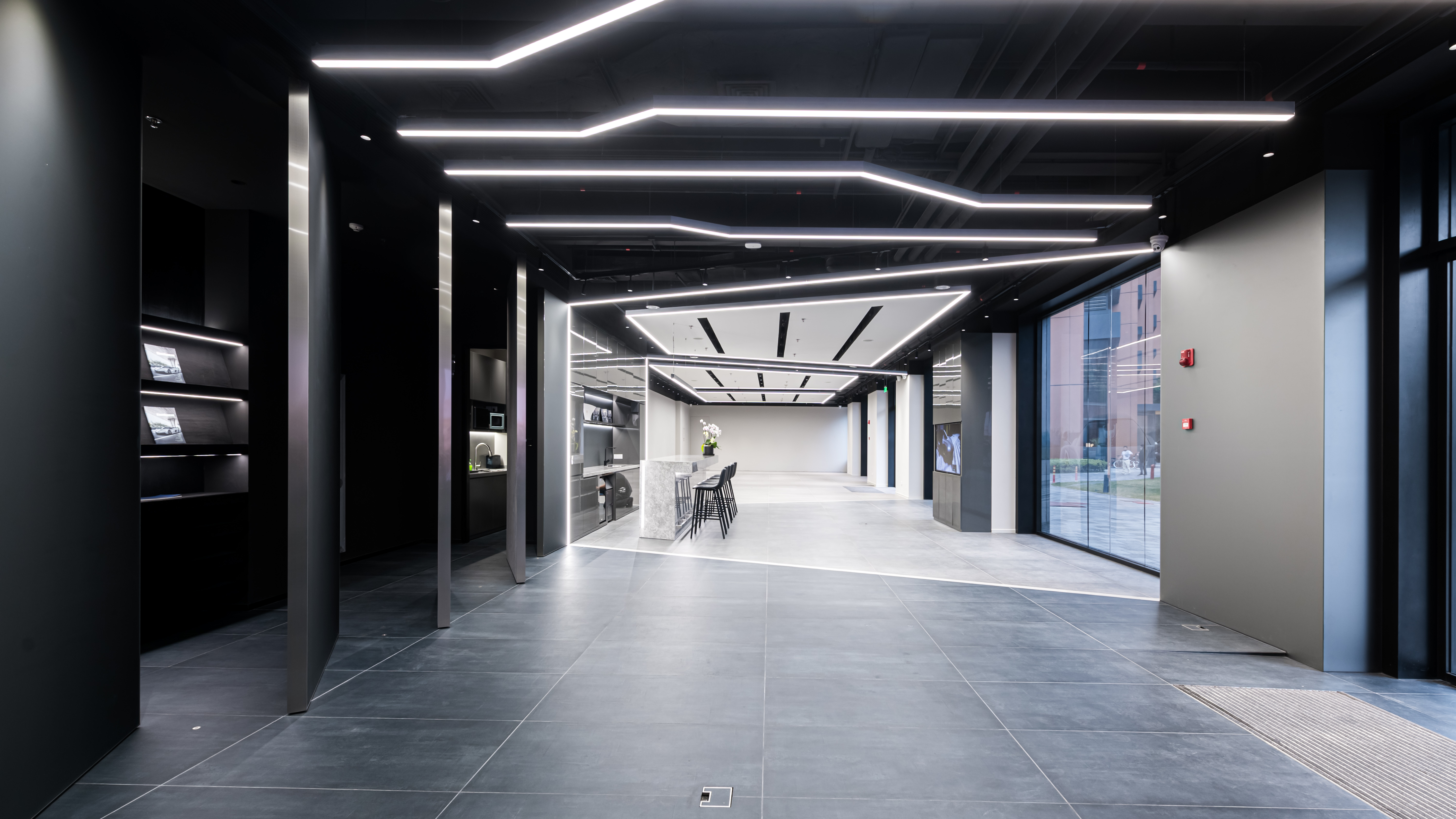 Located in Shanghai at the luxurious Bvlgari hotel, this unique location is situated next to a listed heritage building. Due to the reason, we were unable to change too much of the building facade and were only able to add simple logos to define each of the car brands. The challenge was designing a multi-brand showroom with separate zones to house the two super car brands. We designed a middle lounge/bar area to create a visual separation as well as utilized lights and materials to define the spaces. The linear lights help to create a sense of speed and innovation to reflect the two super car brand’s identity. We designed the space using a very neutral palette and minimal lines so that the interior will not take away from the features of the cars and showcase them in the most effective way. As both cars have their own brand identity interior design, we had to create a flexible middle ground to respect and comply to both their brands. The result is a minimal space with sharp linear accents.