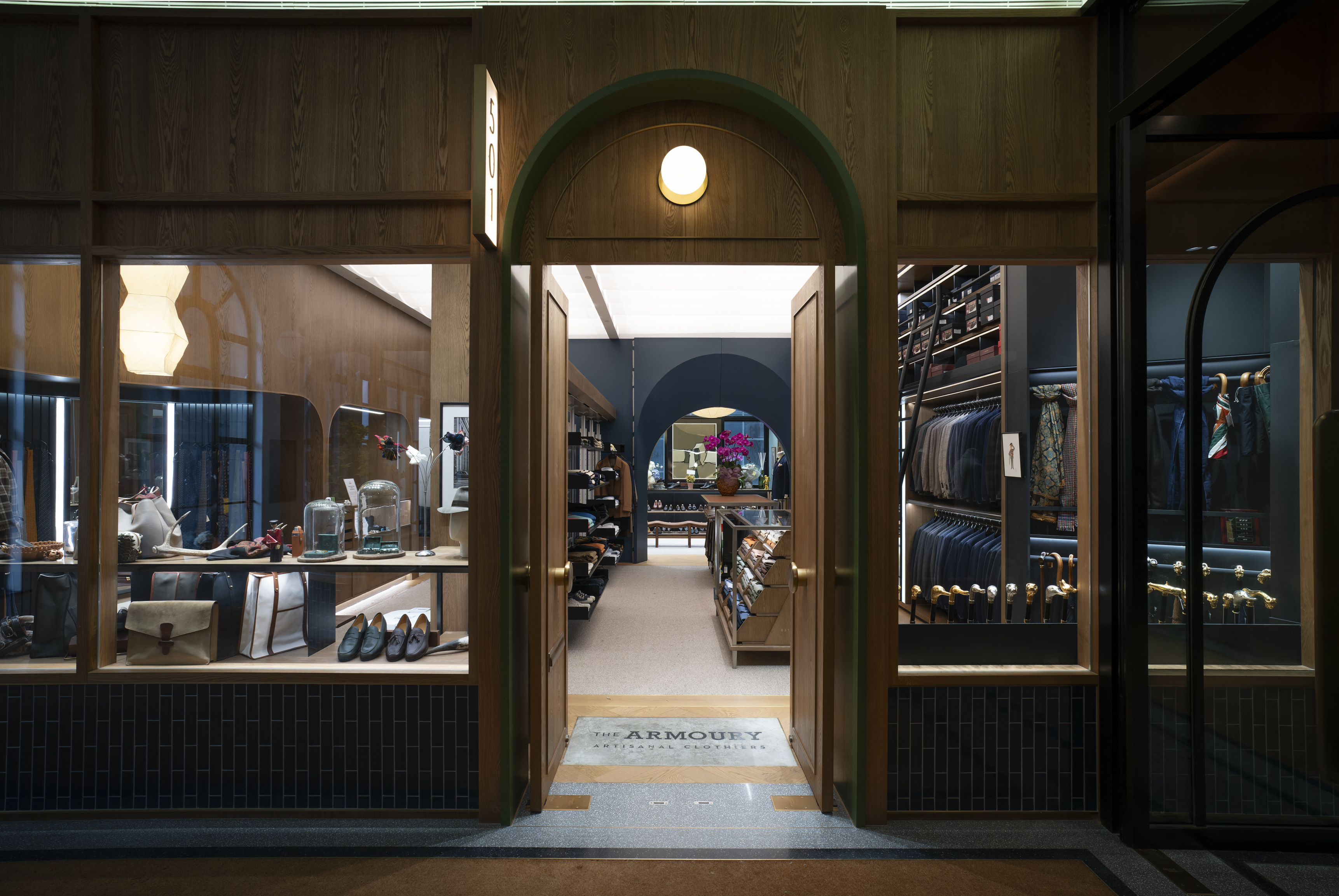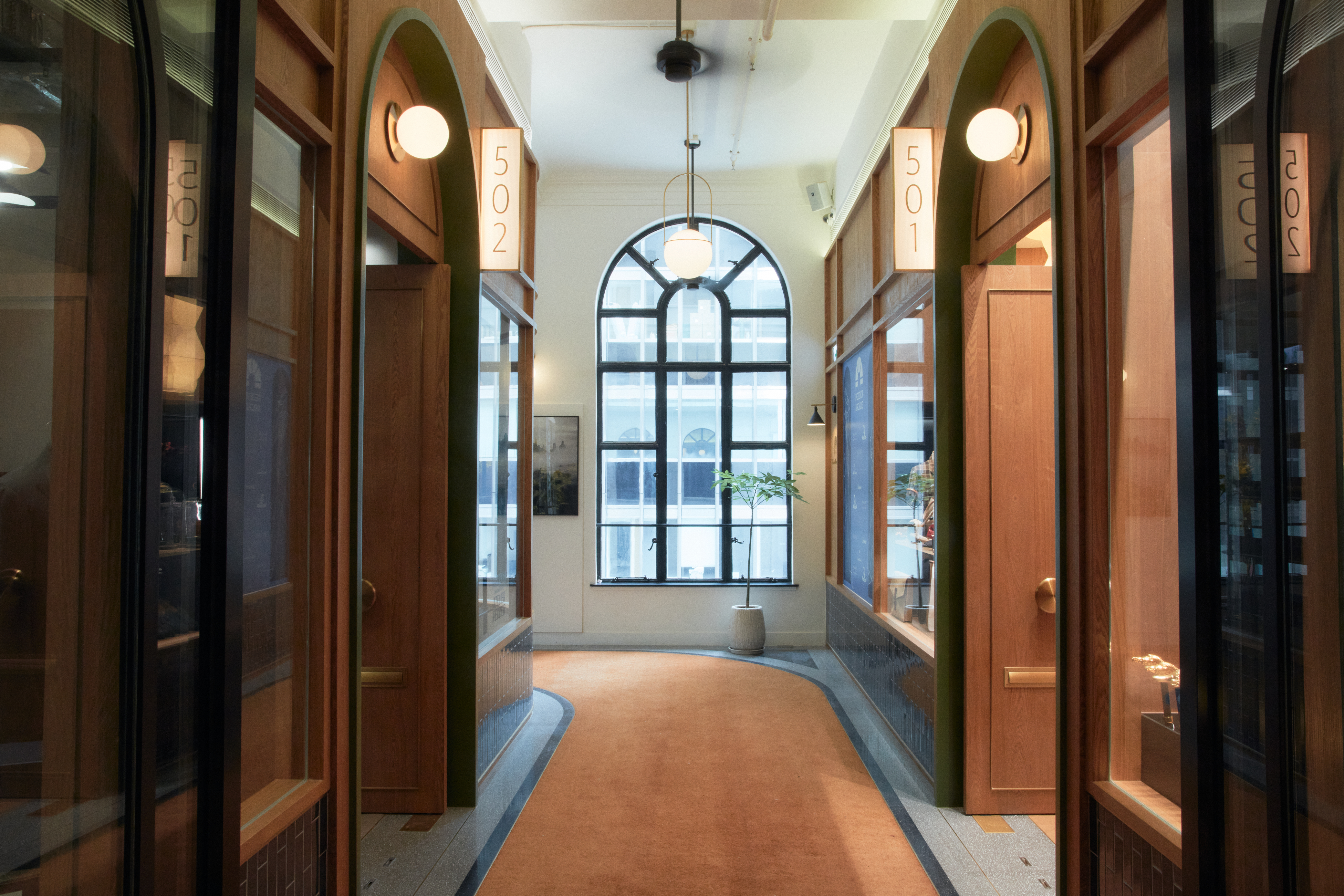 In the heart of Hong Kong, the Pedder Building is the last pre-war building on Pedder Street. The history and the architecture of the building inspired the design of Pedder Arcade. The iconic arch windows informed the design direction and the characteristics of the space. Pedder Arcade transforms an entire floor of the Pedder Building into an intimate, tranquil and sophisticated shopping environment. It makes extensive use of The Pedder Building’s distinctive windows and floorspace, while adding comfortable areas to lounge, drink and dine amidst some of the most interesting luxury retail Hong Kong has to offer. Featuring a series of virtual skylights in the atrium, the circadian sky mimics that of natural day to evening cycle creating a warm and natural atmosphere. The concourse along the floor to ceiling windows creates an intimate corridor to window shop and a quiet space to rest in the midst of the hustle bustle of Central.